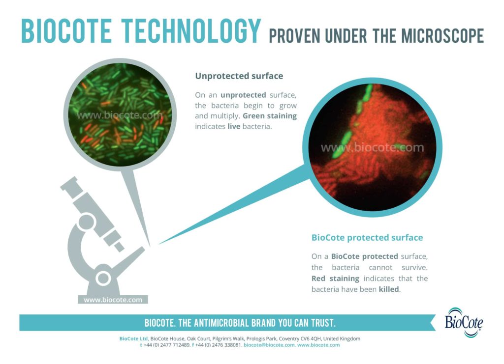 with BioCote® an ideal coating for surfaces in food processing plants, hospitals, laboratorys, schools, offices, and more.*